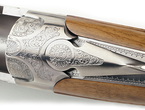 Questo notevole sovrapposto Beretta 687 EL Gold Pigeon II cal. 20, canna 67 cm 4/2 stelle, vanta una bascule slanciata ed elegante che guadagnano sensibilità, velocità di puntamento e maneggevolezza. Le cartelle laterali, rendono aggraziata la linea di questi fucili, mentre le incisioni estese rifinite a mano, li fanno ancor più ricchi e ricercati. Le eleganti cartelle del 687 Gold Pigeon II rappresentano gradevoli scene di caccia raffiguranti incisione riproducente un volo di beccacce sul lato sinistro e un volo di starne sul lato destro. La ricercata tecnica del bassorilievo dona a questi superbi sovrapposti un’eleganza ed una raffinatezza uniche nella loro categoria. Le canne sono una meraviglia di robustezza, di bilanciamento e di prestazioni balistiche. Solo i legni di noce europeo di migliore qualità vengono selezionati per i calci e le astine di questi magnifici sovrapposti. Uno scudetto d’alpacca ovale, incassato nel calcio, permetterà di personalizzare il fucile con le proprie iniziali. Una zigrinatura a passo fine esalta l’elevata qualità del noce selezionato per il calcio e per l'astina a becco d'anatra. La bella e resistente valigetta in dotazione lo proteggerà per le generazioni.