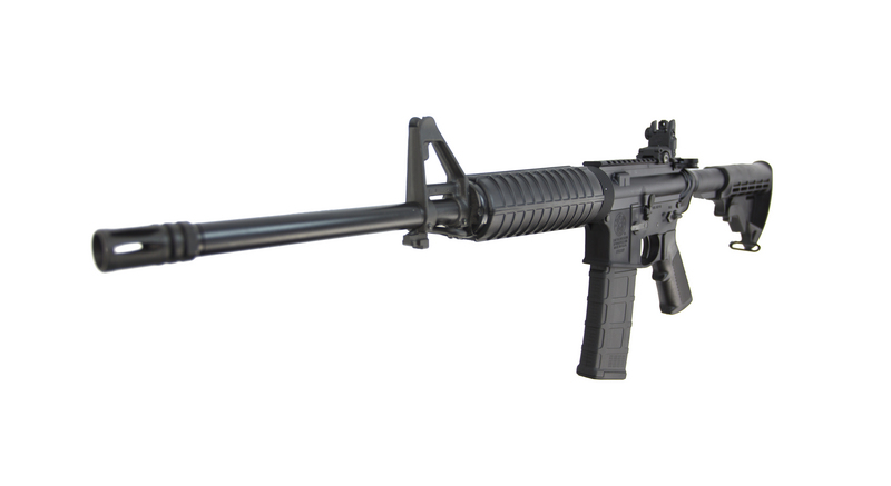 Carabina Semiauto, canna da 16” + rompifiamma di tipo classico, passo di rigatura: 1 in 8”, calibro .223 Rem, mira anteriore fissa, mira posteriore Magpul, calcio collassabile, caricatore in dotazione. Maniglia non in dotazione.