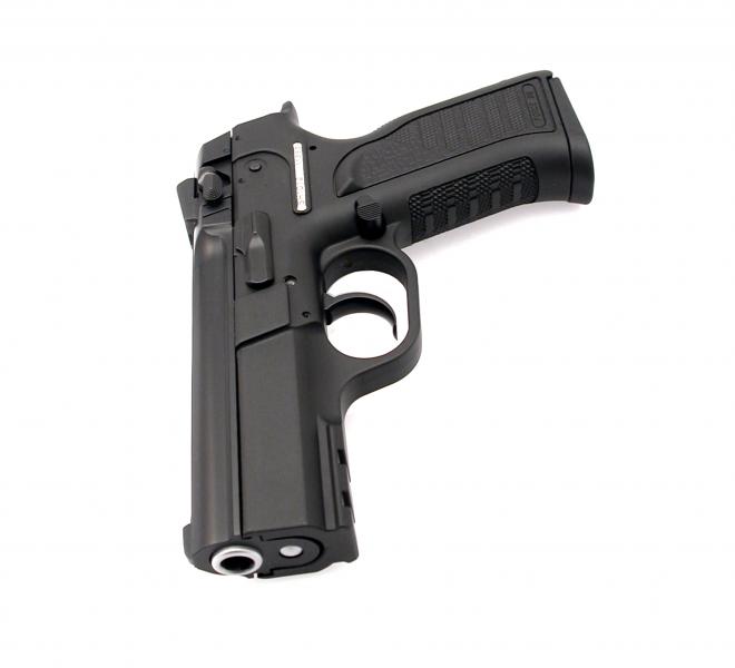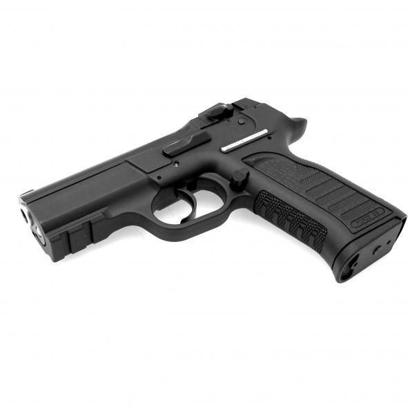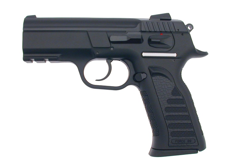 Pistola semiautomatica Tanfoglio Force Police R cal. 9X21, in doppia azione con fusto in tecnopolimeri con base picatinny per il montaggio rapido della torcia ad alta luminosità e/o del puntatore laser che è di estrema utilità per tutti coloro che operano nel campo della sicurezza armata. Questo modello è particolarmente adatto per le forze di polizia e la difesa professionale. Il modello Force Police viene prodotto sia nella versione R, che ha una sicura ambidestra manuale al percussore sul carrello che funge da leva abbatticane, con sicura automatica sul percussore.