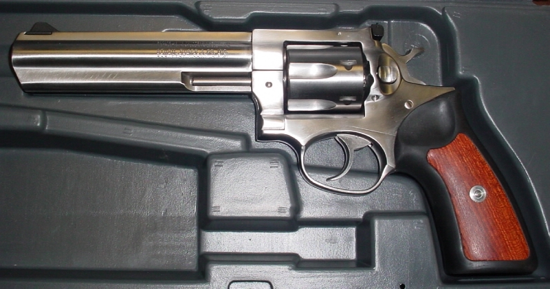 Revolver marca Ruger modello GP 100 calibro .357 Magnum canna da 6", finitura inox. Funzionamento in azione mista (Singola /Doppia azione) arma indicata principalmente per tiro in poligono ed anche per difesa abitativa. Dotata di tacca di mira regolabile. Arma di costruzione robusta e sicura affidabilità realizzata integralmente in acciaio inox è consigliata a tutti quegli utenti che desiderano possedere un revolver con ottime caratteristiche per il tiro in poligono grazie alla generosa lunghezza di canna.
