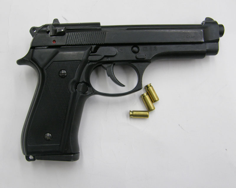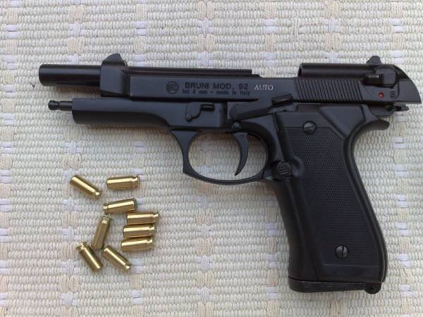 Pistola a salve con guancette in plastica nere semi-automatica Mod.92 Beretta cal 8 mm Bruni