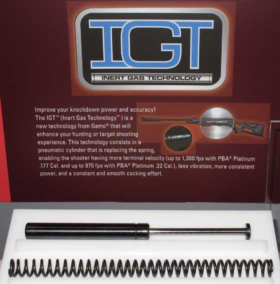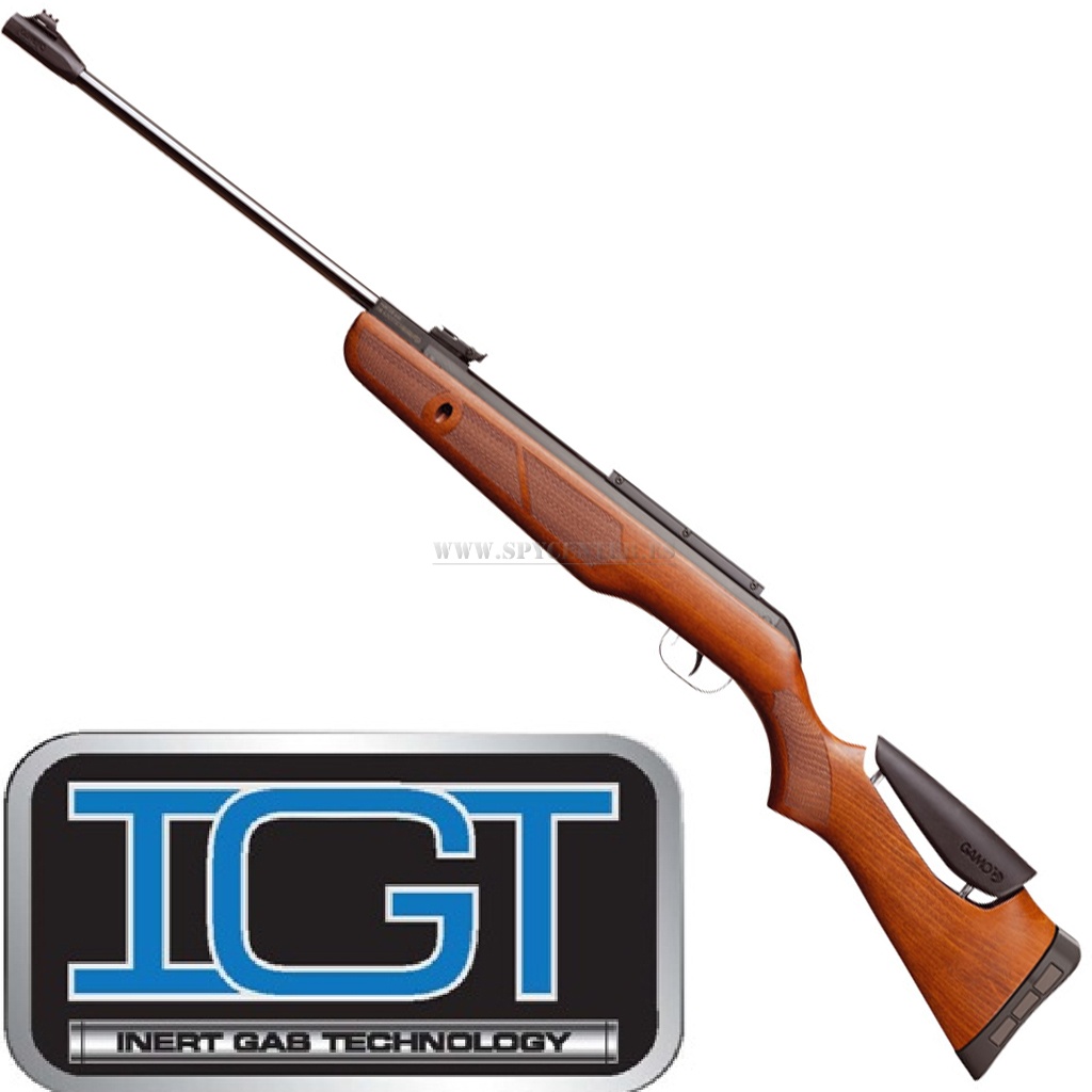 La carabina Gamo Hunter IGT, Inert Gas Technology di Gamo, consiste in un pistone caricato ad azoto al posto della consueta molla. Questa tecnologia permette di avere carabine più silenziose, più potenti e meno reattive rispetto alle armi classiche funzionanti a molla. Nella versione di libera vendita per il mercato italiano, l'energia è limitata a soli 7,5 Joule massimi, ma la "molla ad azoto" riduce notevolmente le vibrazioni, consentendo uno sparo più dolce ed ovattato.