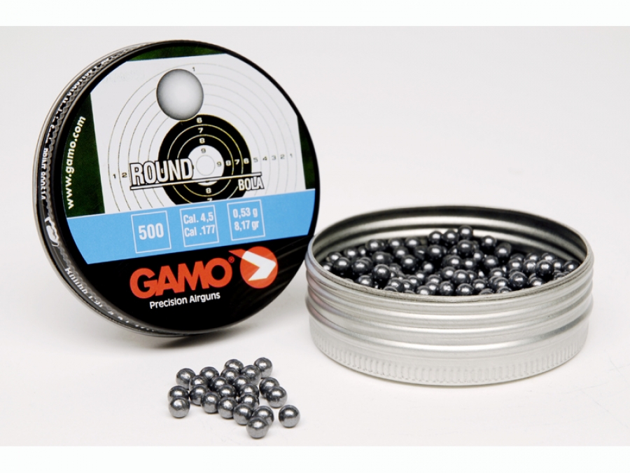 GAMO DIABLO ROUND 4,5. Confezione da 500 pezzi. Rotondo ! Penetrazione profonda e così facile da caricare! Il Gamo rotondo è progettato per la penetrazione soprattutto nelle pistole a ripetizione come la Gamo P-23. Particolarmente facile da caricare quando contano itempi di ricarica. È stato sviluppato particolarmente per l'utilizzazione field. Questo colpo non è adatto in pistole BB. La sua forma sferica, con la conseguente concentrazione di massa, permette a questo pallino di penetrare nel bersaglio più profondamente di qualsiasi altro proiettile a qualunque distanza.