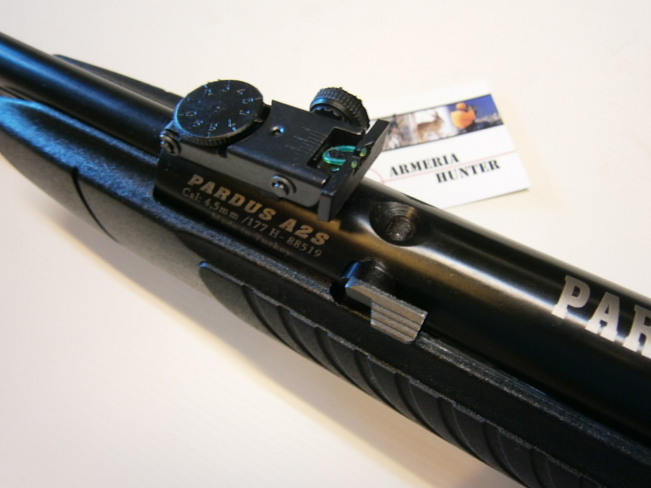 Pardus A2A carabina ad aria compressa , di libera vendita di alta qualitá; con calciatura in Tecnopolimery, armamento a leva, canna fissa. Meccanica potente, affidabile e robusta in quanto nata per potenze fino a 18J.Caratteristiche:Carabina libera vendita <7,5 joule, calibro: 4,5 mm.
