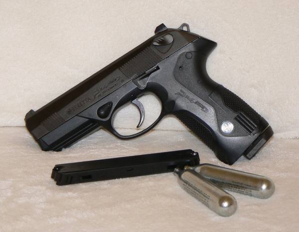 La pistola Beretta Px4 Storm Co2 cal. 4,5, < 7,5 joules è il modello compatto della Beretta che unisce leggerezza e alta performance. Scarrellante per un'esperienza più realistica possibile. Doppio caricatore da 8 che basta girare nella sede per permettere ben 16 colpi praticamente senza pause. Slitta sottocanna che permette il montaggio di torcia o laser (non inclusi nella confezione).