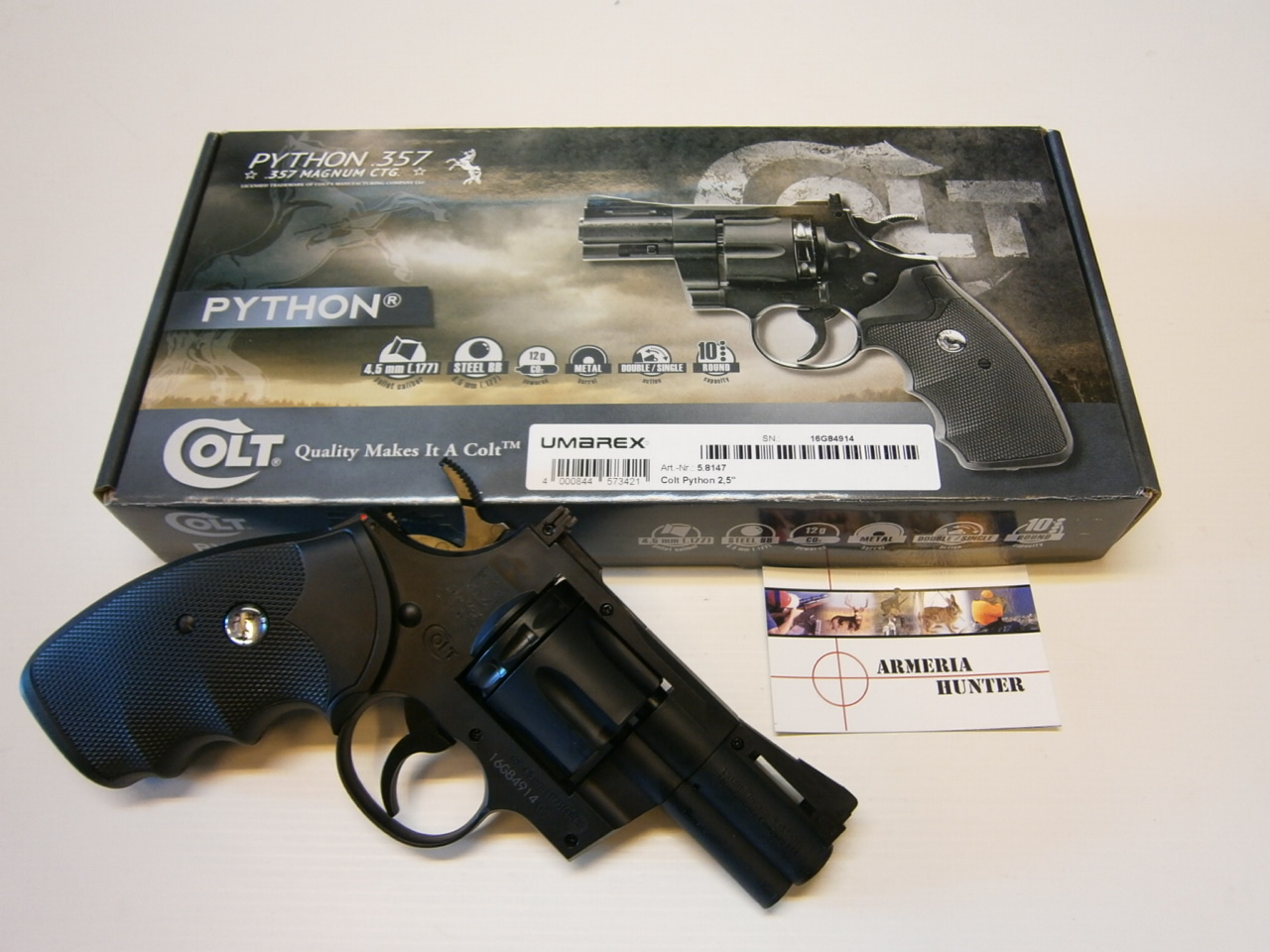 Revolver co2 Umarex. Replica con canna di 2,5 pollici del mitico revolver Colt Pyton .357 Magnum, spara pallini sferici oppure Diabolo mediante tamburo intercambiabile da 10 colpi.