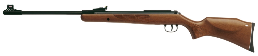Carabina ad aria compressa Diana mod. F 280 cal. 4,5, < 7,5 joules. Elegante calciatura in faggio a piena lunghezza con poggiaguancia ambidestro, calciolo in gomma e fitte zigrinature sulle prese, sicura automatica, mire con inserti in fibra ottica e scina per il montaggio del cannocchiale costituiscono la ricca dotazione di serie del nuovo modello F280, erede del classico modello F28.