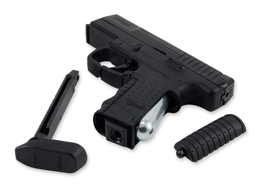 La pistola Co2 PPS è uno dei tanti modelli compatti prodotti dalla Walter, che unisce leggerezza e alta performance. Scarrellante per un'esperienza più realistica possibile. Il caricatore utlizza un ststema a pallini sferici che gli permettere ben 18 colpi, praticamente senza pause. Slitta sottocanna che permette il montaggio di torcia o laser (non inclusi nella confezione e nel prezzo).
