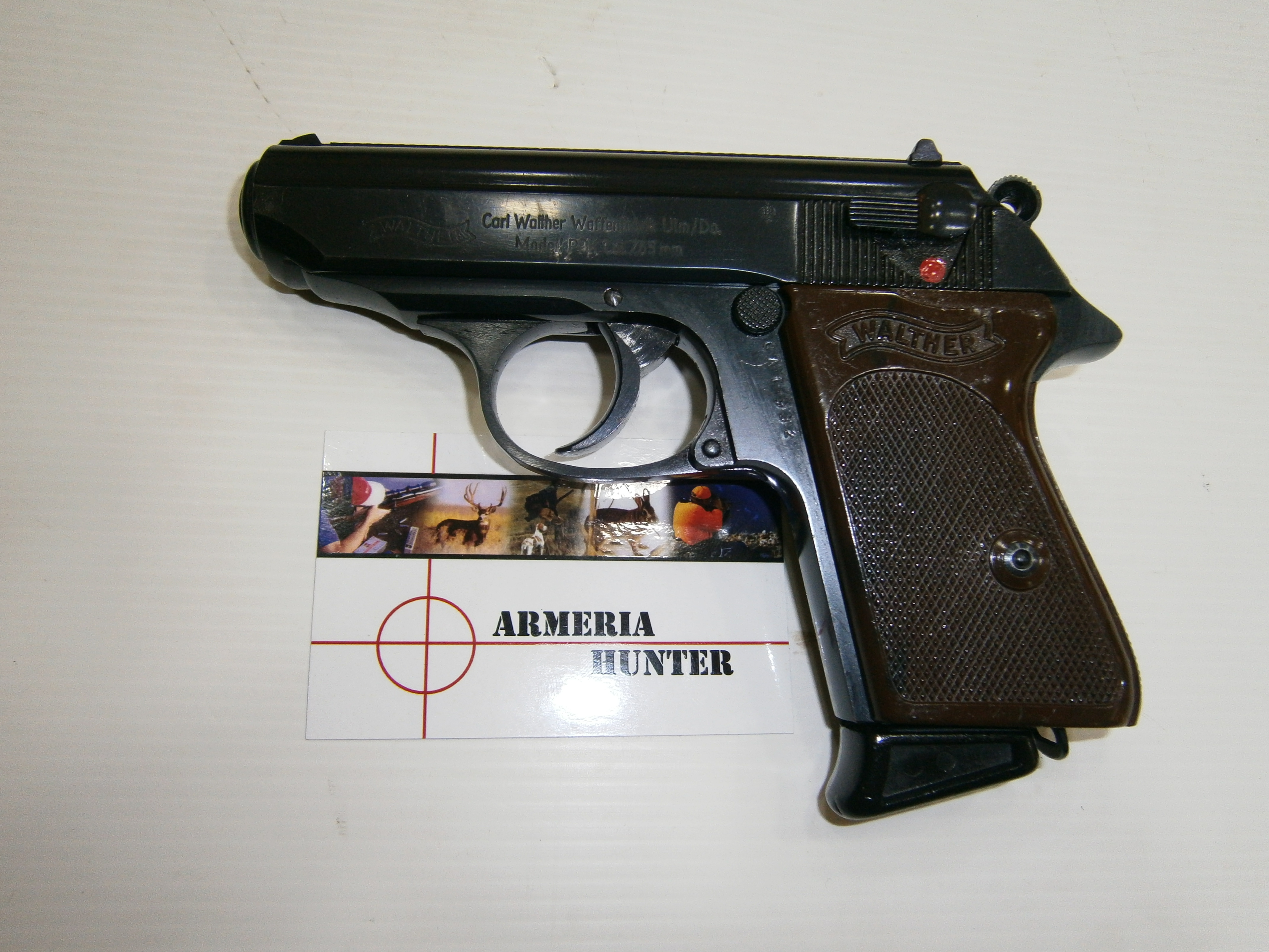 Pistola semiautomatica Walther PPK calibro 7,65 – fusto in acciaio – doppia azione con abbattimento del cane – fornita con due caricatori originali.