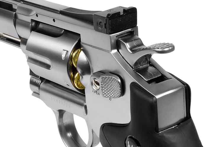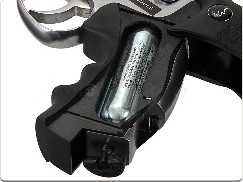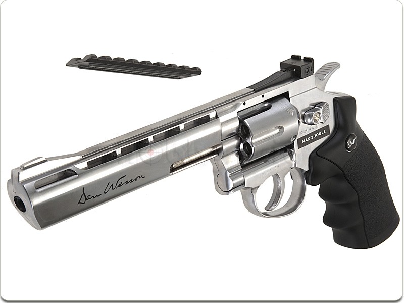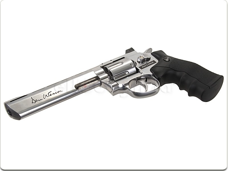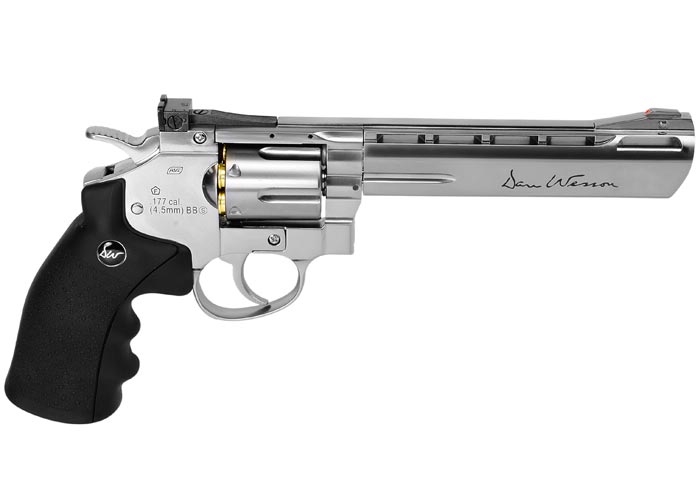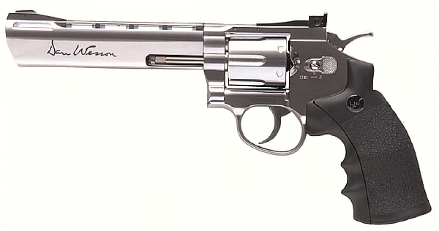Costruito dalla KWC, leader del settore AirGun, il Dan Wesson è un revolver alimentato a capsule usa e getta da 12 grammi di anidride carbonica. La replica è assolutamente fedele, sia dal punto di vista estetico, sia per quanto riguarda il realismo di peso e comandi, come l'originale americano, del quale mantiene anche i marchi. Spara pallini sferici, contenuti all'interno di 6 finti bossoli in ottone, alloggiati all'interno del tamburo, esattamente come nell' arma vera. La finitura è Inox. Il grilletto è in singola e doppia azione, le mire sono regolabili. Questa è la versione con canna da 6 pollici. Questi revolver dalla grande potenza, erano spesso portate come arma dai poliziotti americani.