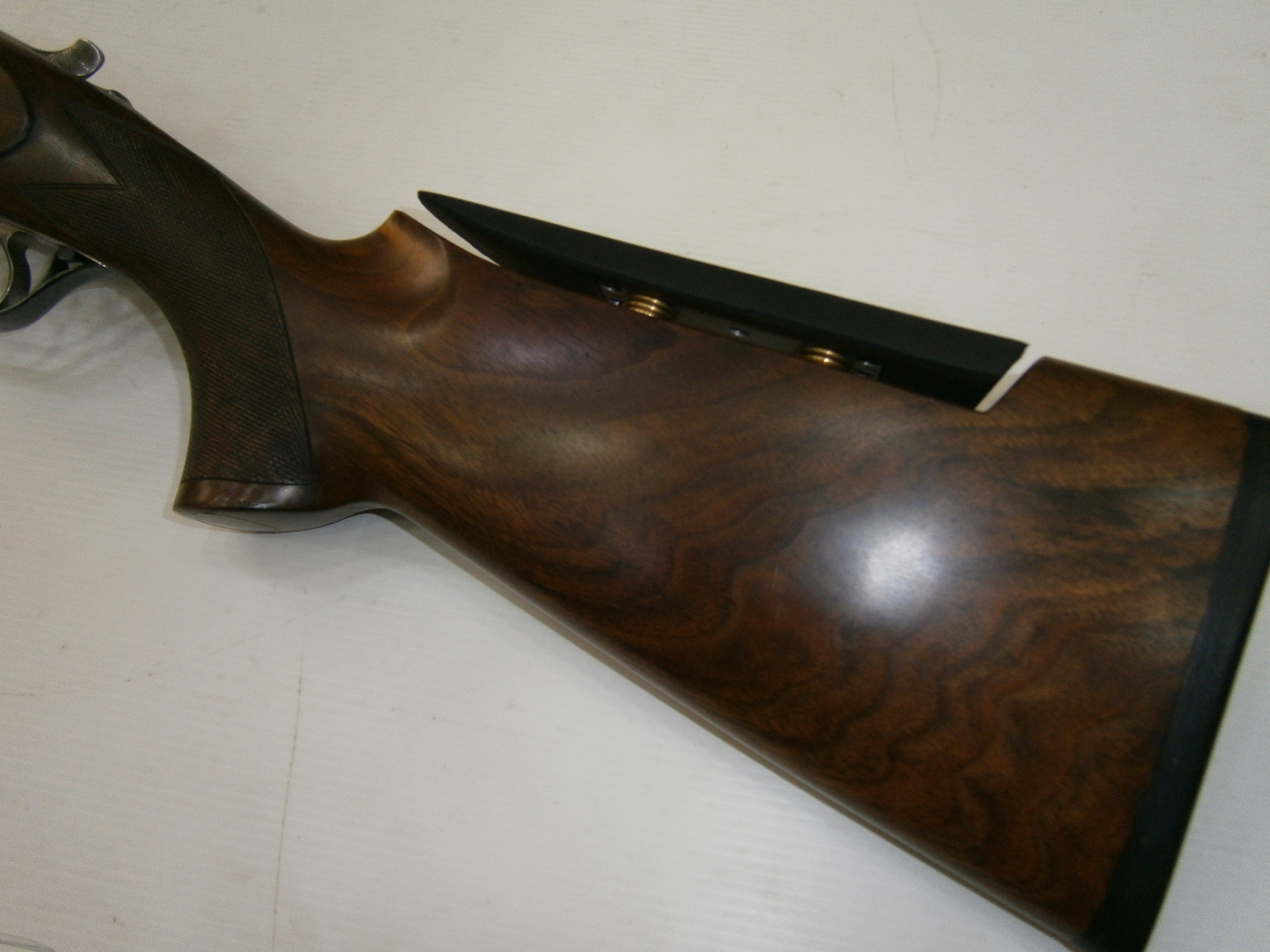 Sovrapposto da tiro F.lli Gamba Montreal cal.12. Canne acciaio Boehler cm 74 strozzature 3/1 stelle 18,6/18,4 Kg 1,620. Batterie estraibili.