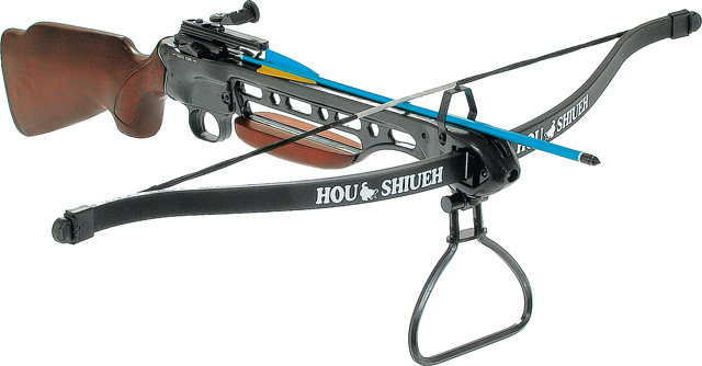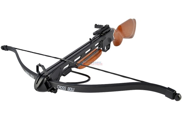 Balestra a fucile 150 LBS, calcio in legno, arco in fibra, corpo in alluminio. n°. 2 frecce in dotazione.