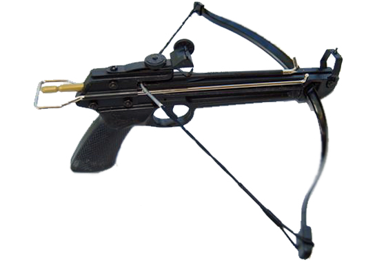 Balestra a pistola 50 LBS, finitura nero, arco in fibra, corpo in alluminio. n°. 2 frecce in dotazione.
